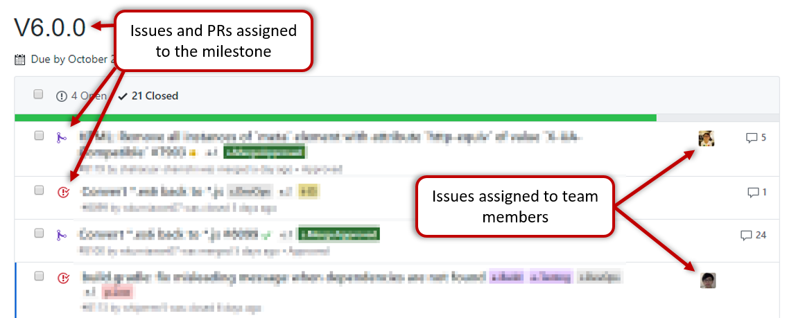 - Assign the PR to a milestone. This allows the PR to become visible under the milestone progress.