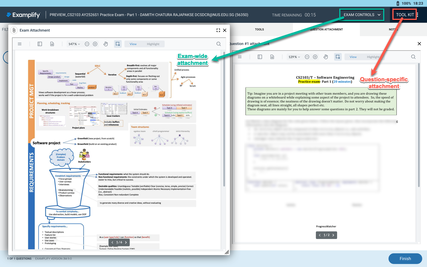 - Diagrams/images in some questions will be repeated as an attachment for some questions, so that you can see the top part and bottom part of the question side-by-side, rather than repeatedly scrolling up-and-down. You can close the attachment pane (using the