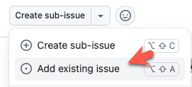 Create sub-issue→Add existing issue).