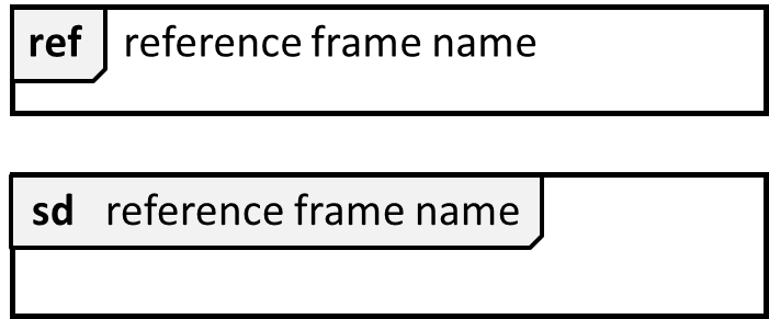 UML uses ref frame to allow a segment of the interaction to be omitted and shown as a separate sequence diagram. Reference frames help you to break complicated sequence diagrams into multiple parts or simply to omit details you are not interested in showing.