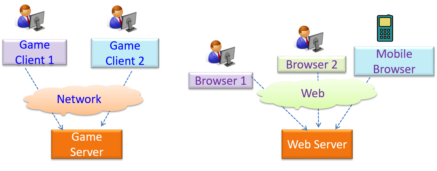 The online game and the web application below use the client-server style.