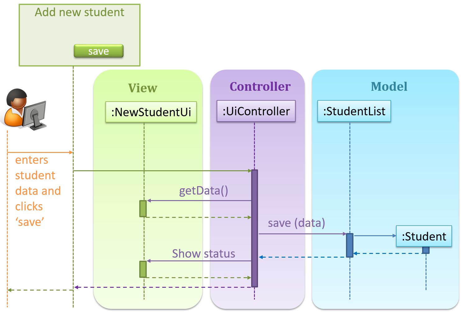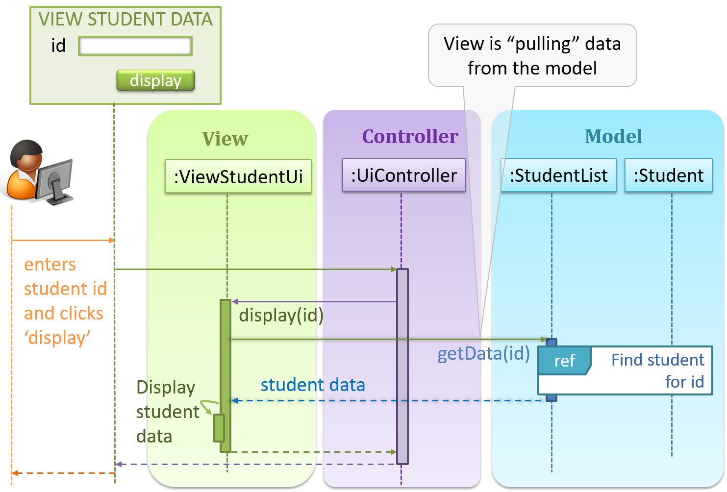 Given below is a concrete example of MVC applied to a student management system. In this scenario, the user is retrieving the data of a student.