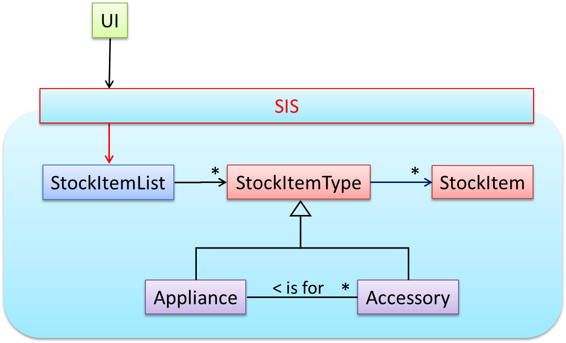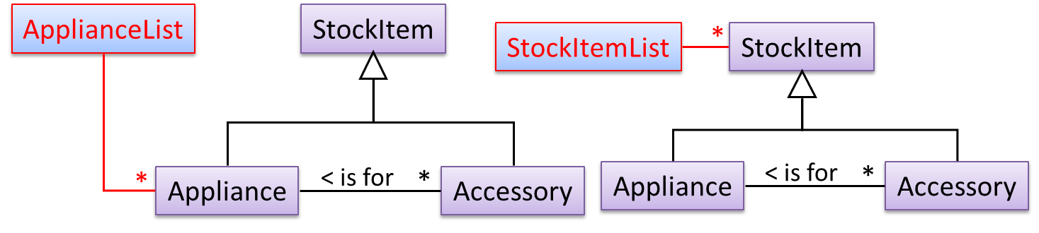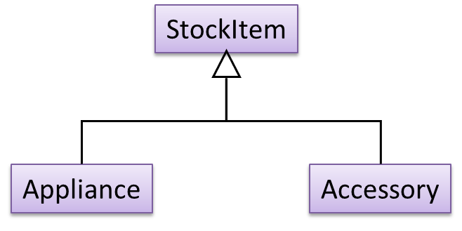 The latter seems more suitable because it can handle both appliances and accessories the same way. Next, an abstraction occurrence pattern is applied to keep track of StockItems.