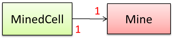 Consider the association given below. A defensive implementation requires us to ensure that a MinedCell cannot exist without a Mine and vice versa which requires simultaneous object creation. However, Java can only create one object at a time. Given below are two alternative implementations, both of which violate the multiplicity for a short period of time.