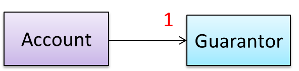 Here, the association is compulsory i.e., an Account object should always be linked to a Guarantor. One way to implement this is to simply use a reference variable, like this: