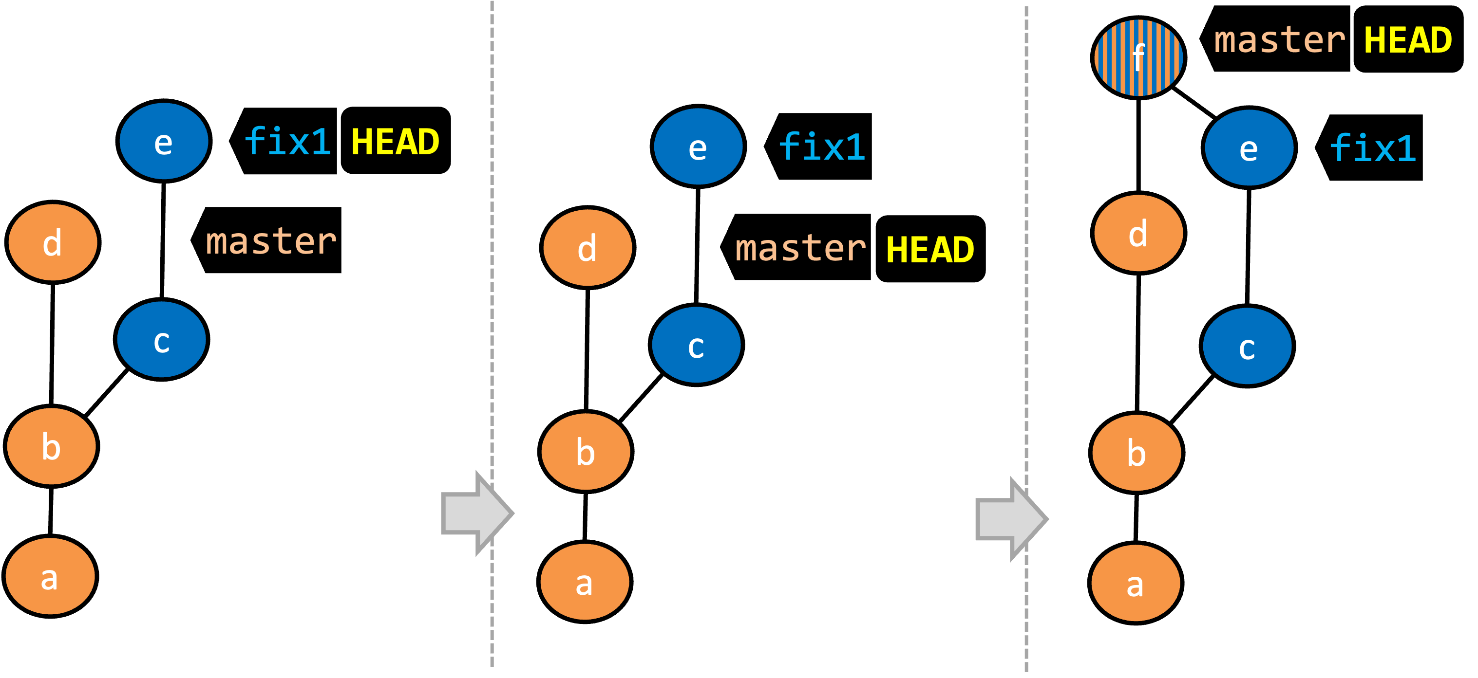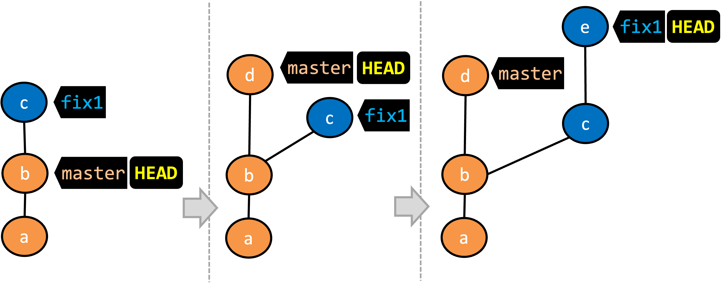 You can run the git log --oneline --decorate --graph --all to check the revision graph after each step. The final outcome should be something like the below:
