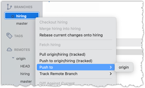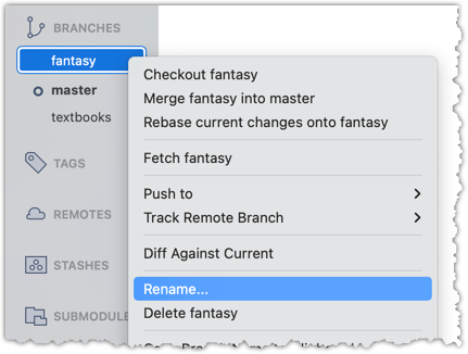 git push -u origin fantasy-books # push the new branch to remote, and set it to track