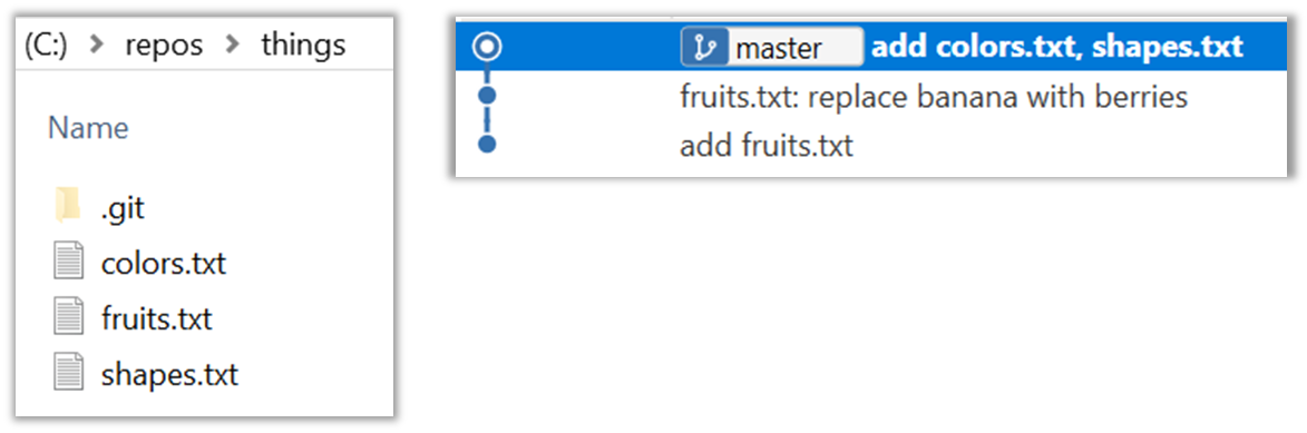 .git inside the things folder. This folder will be used by Git to store metadata about this repository.A Git-controlled folder is divided into two main parts: