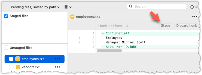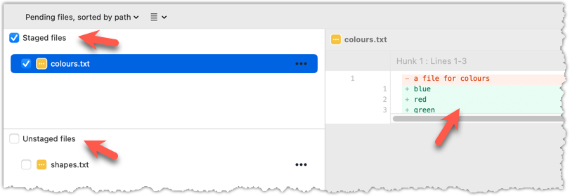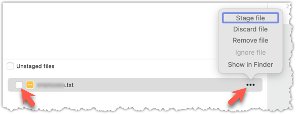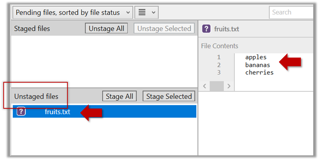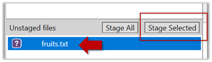 2.1 Note how the file is shown as ‘unstaged’. The question mark icon indicates the file is untracked.