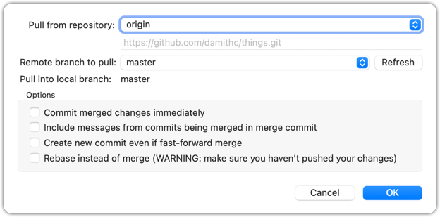 master branch from the repo in your team org.master branch to your PR branch.[Another member or the PR author]: Merge the de-conflicted PR: When GitHub does not indicate a conflict anymore, you can go ahead and merge the PR.