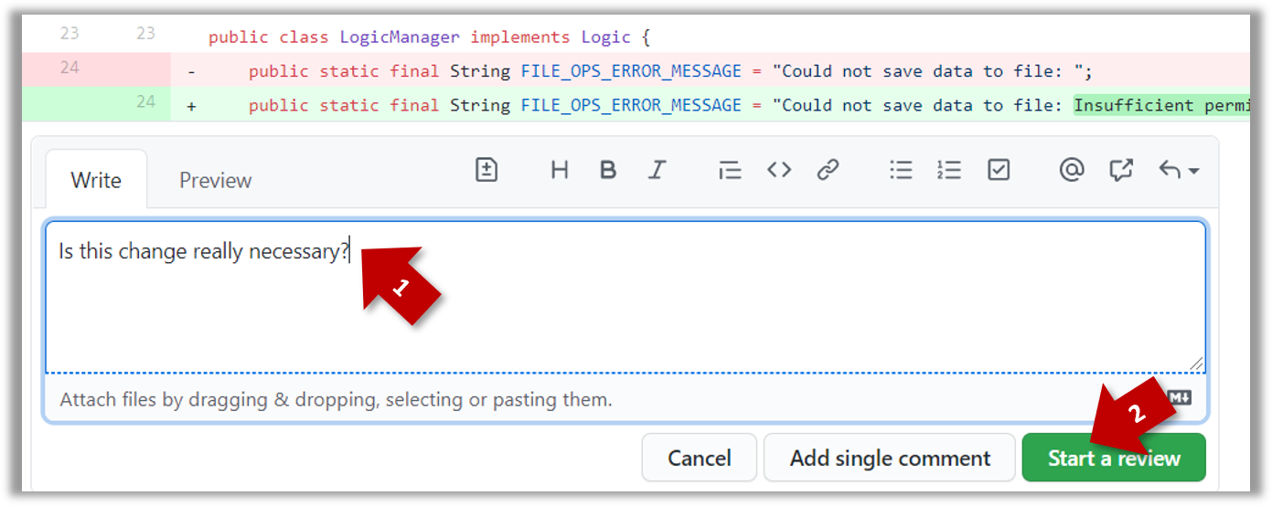 [A team member (not the PR author)] Review the PR by adding comments (can be just dummy comments).