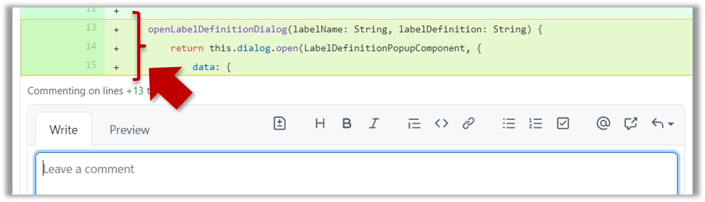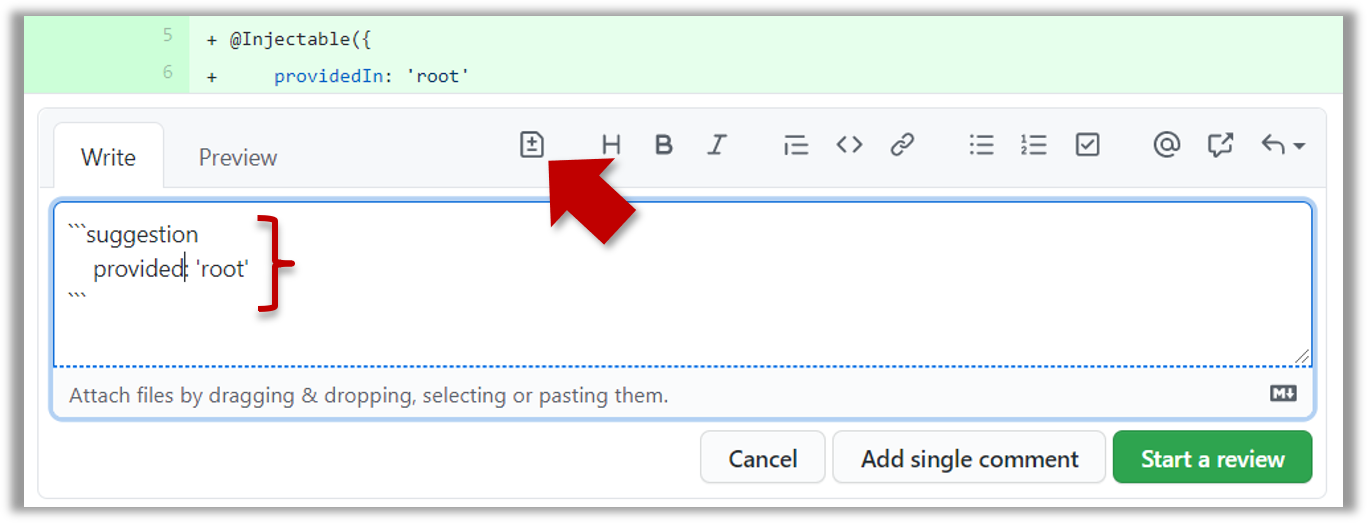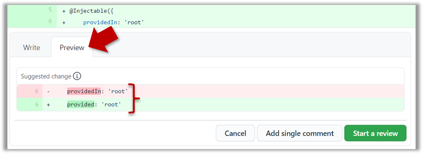 suggestion code block generated by GitHub (as seen in the screenshot above).