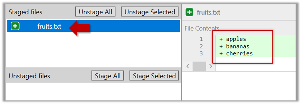 We can stage an untracked file to tell Git that we want its current version to be included in the next snapshot (in Git terminology, such a snapshot is called a commit). Once you stage an untracked file, it becomes 'tracked' (i.e., under Git's control). A staged file can be unstaged to indicate that we no longer want it to be included in the next snapshot.