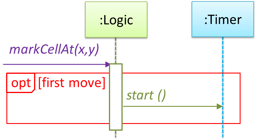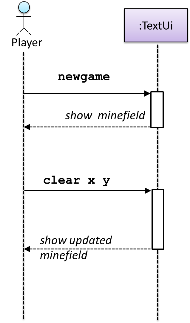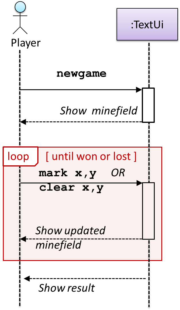 Continuing with the example in [Design → Modeling → Modeling a Solution → Basic], next let us model how the TextUi interacts with the Logic to support the mark and clear operations until the game is won or lost.