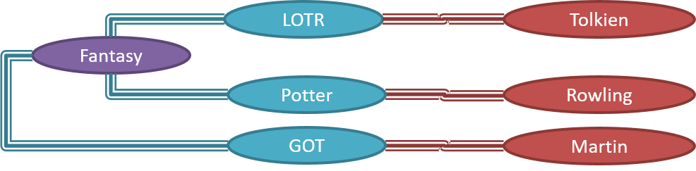 Here is a class structure (drawn using an ad-hoc notation) that matches the object structures given in the previous two examples. For example, note how this class structure does not allow any connection between Genre objects and Author objects, a rule followed by the two object structures above.