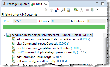 Most modern IDEs have integrated support for testing tools. The figure below shows the JUnit output when running some JUnit tests using the Eclipse IDE.
